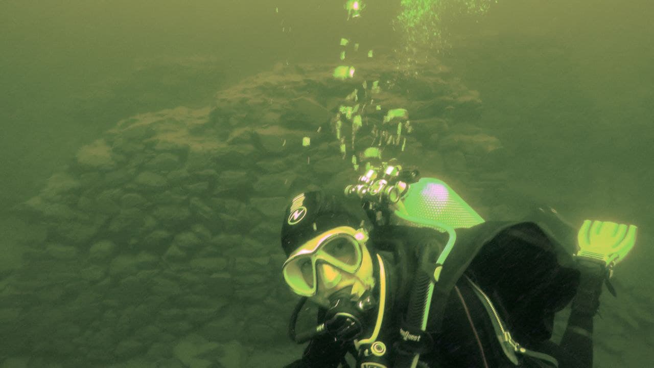 Heute gab es wieder zwei Tauchgänge im fast vollen Edersee, Einsteigsstelle Denkmal. Der erste Tauchgang führte zu den Überresten der Klostermauer. Von da ging es weiter zur Schule und zum nördlichen Seeufer. Unter den ins Wasser ragenden Büschen wurden unsere Hoffnungen auf Fischsichtungen leider nicht erfüllt. Beim zweiten Tauchgang nahmen wir den Weg über die Straße hin zur Kirche und über diverse Mauerreste zurück zur Einstiegstelle. Diesmal mit etwas mehr Fischglück. Für Edersee Verhältnisse war die Sicht noch gut, oben wird’s aber langsam etwas trüber.